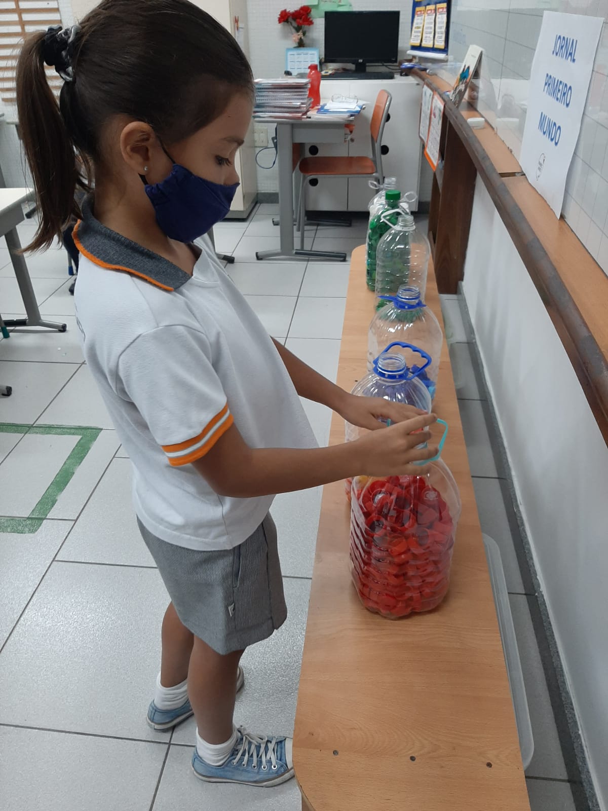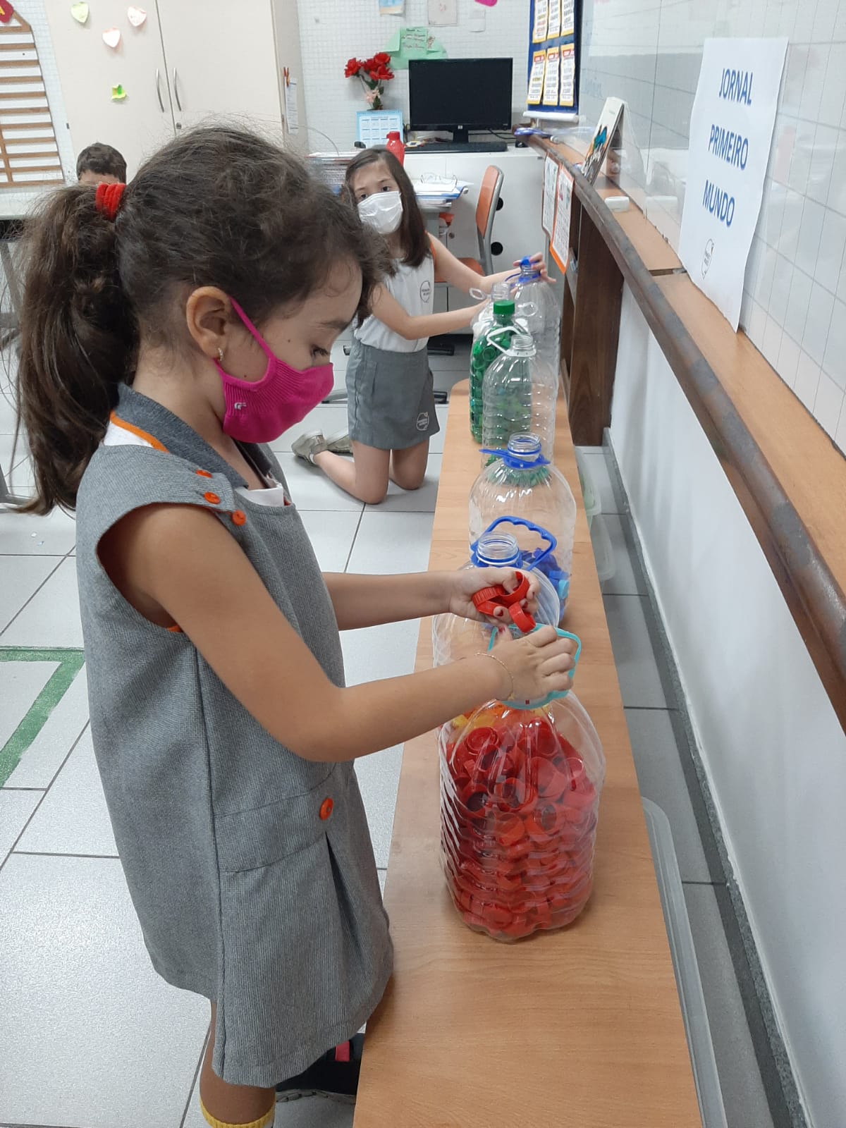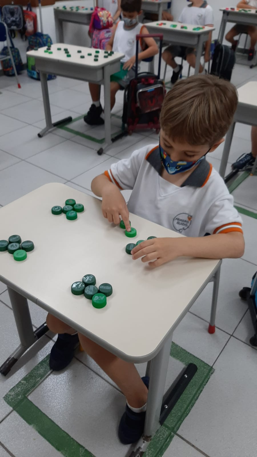 Antes, as tampinhas também foram utilizadas nas aulas de Matemática no auxílio da contagem e das operações.